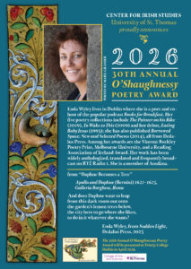 Join us to celebrate the 30th O’Shaughnessy Poetry Award with readings by Enda Wyley (2026 winner), Gerry Murphy (2022 winner) and Dermot Bolger (2021 winner).